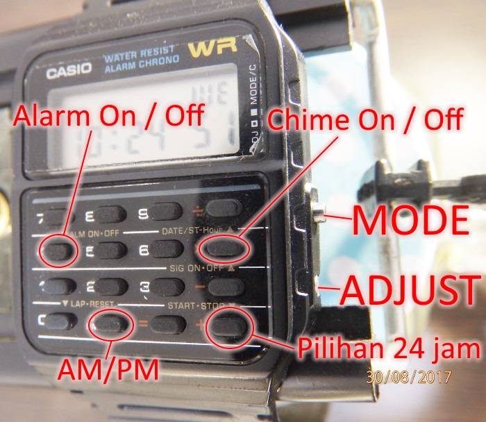 Cara matikan dan nyalakan Alarm dan Chime / Signal di arloji calculator Casio CA53W: